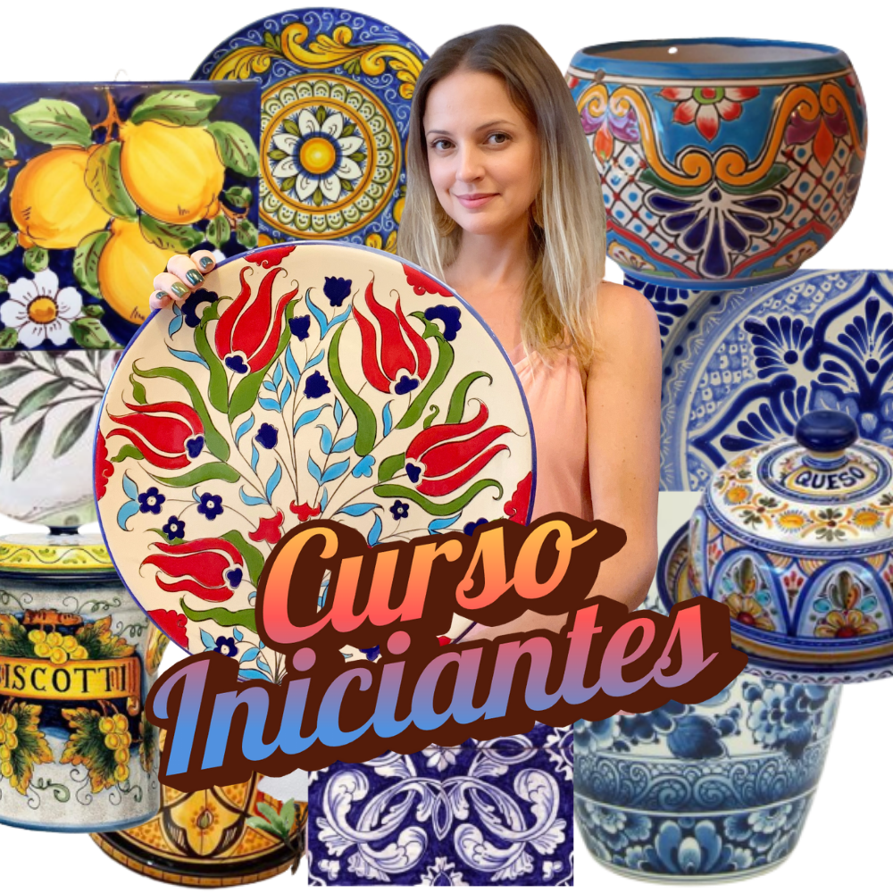 Neste curso completo, você aprenderá diferentes estilos tradicionais de pintura em cerâmica — italianos, espanhóis, portugueses, mexicanos, marroquinos, turcos e holandeses — enquanto desenvolve domínio técnico, segurança com o pincel e sensibilidade artística.